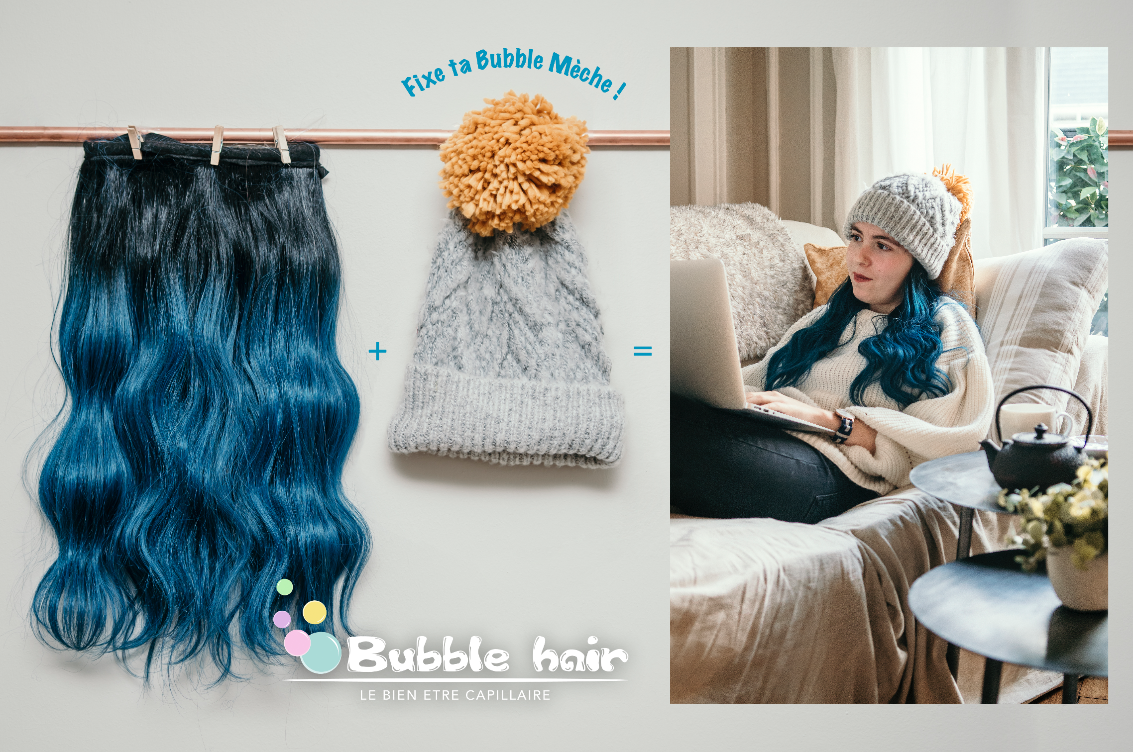 Logo, cartes de visites, photos, flyers, campagne Ulule, et plus encore, réalisés pour Bubble Hair, une boutique sociale et solidaire basée à paris.